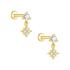 Dainty Star Dangle Flat Back Earrings 925 Sterling Silver Gold Plated Cartilage Jewelry