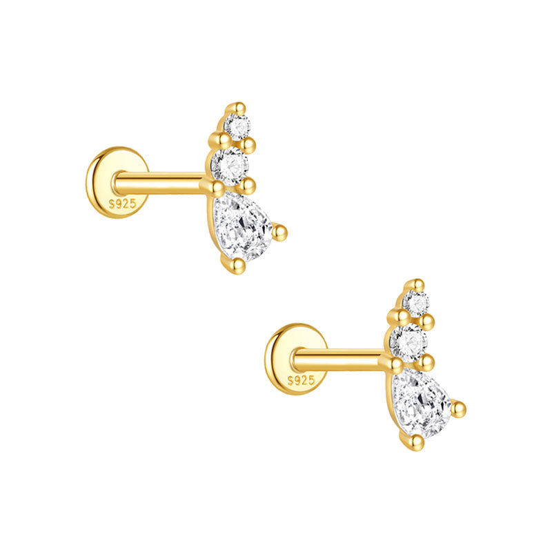 Triple Marquise Zircon Flat Back Earring S925 Sterling Silver Cartilage Jewelry Gold Plated 5A Zircon Comfort Fit Design