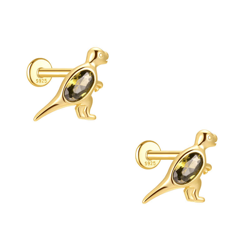 Gold Plated Dinosaur Flat Back Earrings S925 Sterling Silver Comfort Fit Cartilage Jewelry
