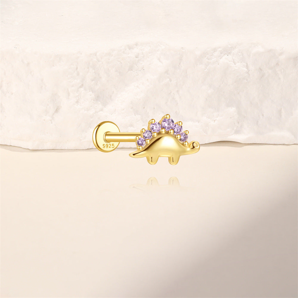 Purple Zircon Stegosaurus Flat Back Earrings 925 Sterling Silver Dinosaur Cartilage Jewelry