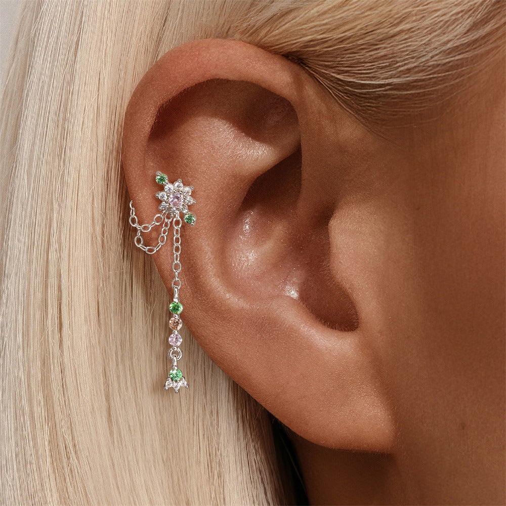 Boho Colorful Zircon Flat Back Earring - S925 Sterling Silver Tassel Cartilage Ear Jewelry
