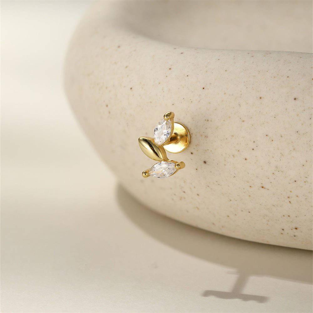 Zircon Leaf Branch Flat Back Earring S925 Sterling Silver Gold Nature Cartilage Jewelry