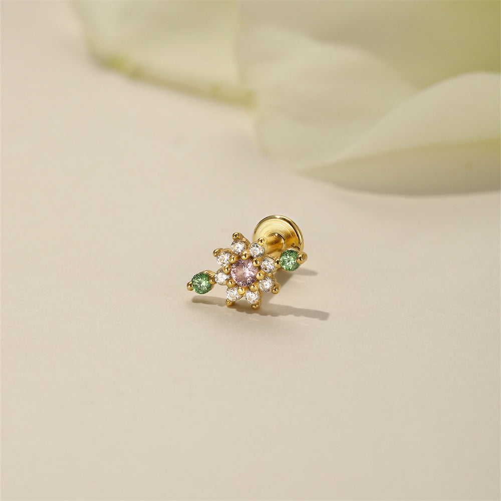 Gold Flower Flat Back Earrings 925 Silver Zircon Cartilage Piercing Earring