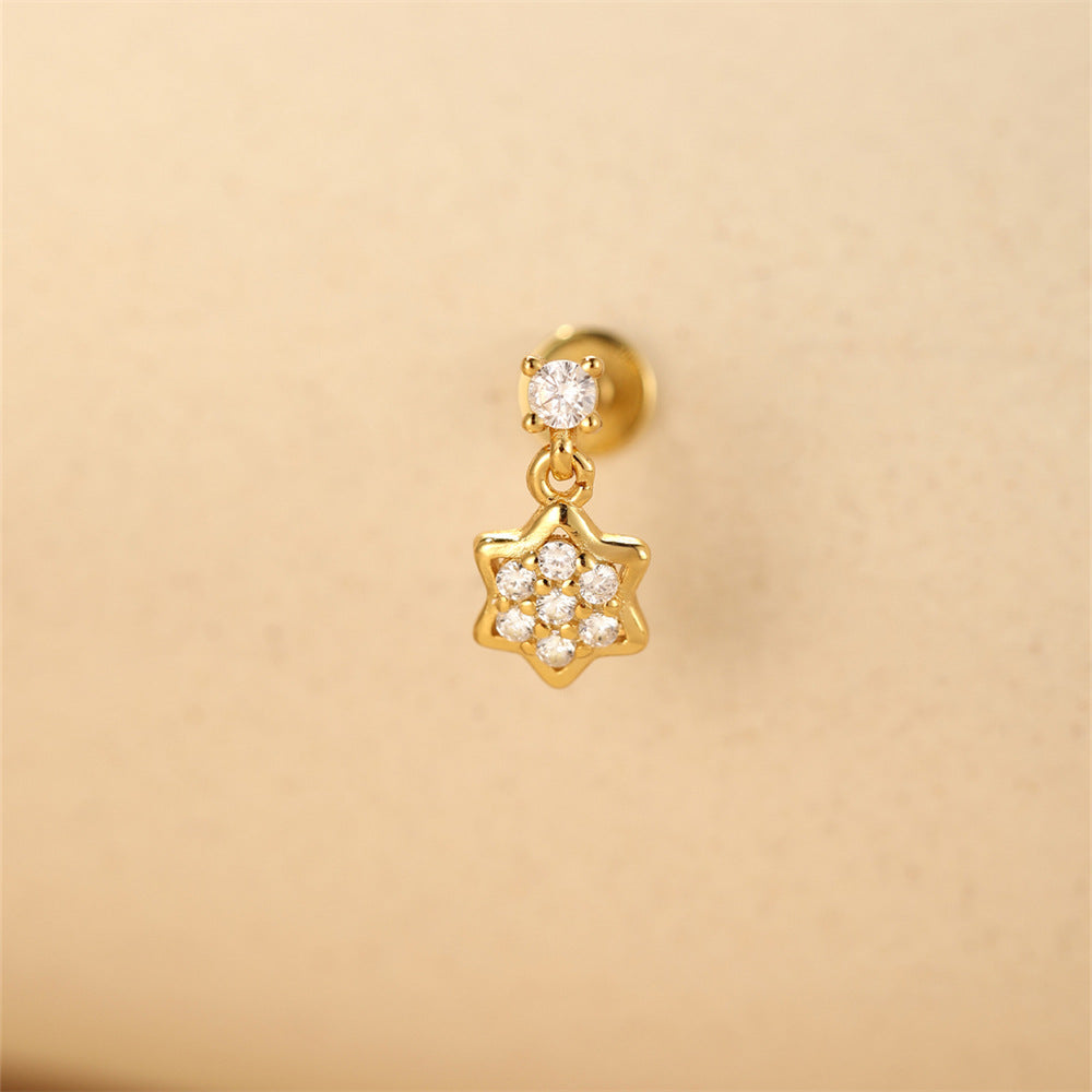 North Star Dangle Flat Back Earring S925 Sterling Silver Zircon Cartilage Jewelry