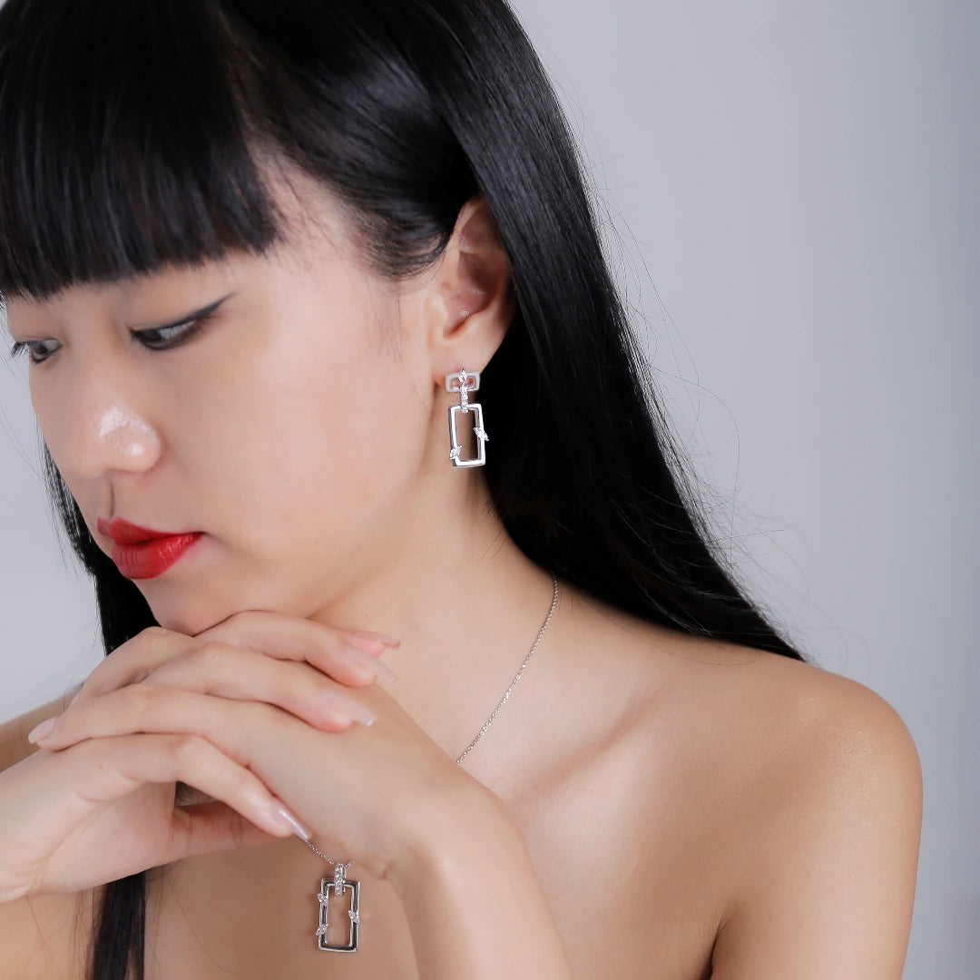 Rectangular Earrings Jasmine Breeze Collection Designed by Golnaz Niazmand