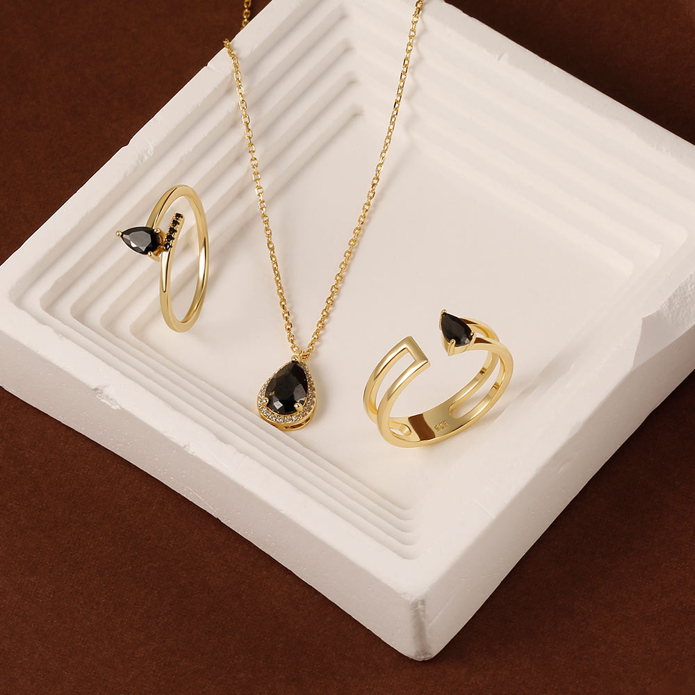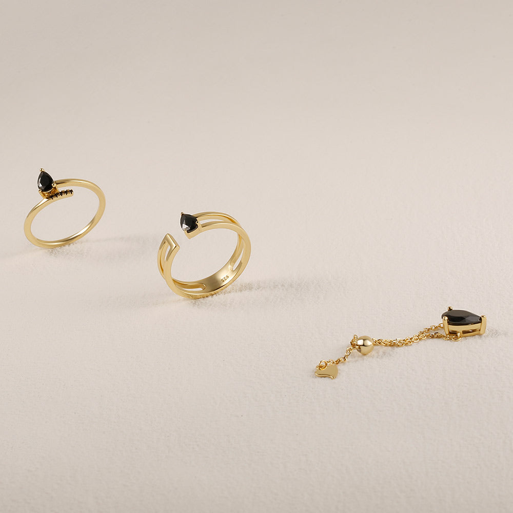 I specifically wanted to make a jewelery collection that would be super easy to match with every outfit & could be worn on a daily basis! I especially love how the black raindrop gem, that makes an appearance in every single piece in this collection, gives it that effortlessly classy look that will look amazing both with a casual everyday outfit and on a more formal occasion!